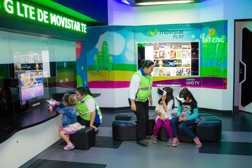 En la primera parte, los niños usan tabletas touch screen para jugar e interactuar con las diversas aplicaciones y tecnologías disponibles, y posteriormente, en la segunda parte, tienen acceso al catálogo en línea de Movistar Play para elegir una película acorde a su edad y conocer las facilidades de descargarlas en línea con el 4G LTE, el internet más rápido de Guatemala. El recorrido finaliza con la experiencia de utilizar los lentes de realidad virtual y recrear la emoción de estar en diversos escenarios lúdicos.